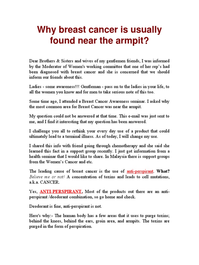 If breast cancer is diagnosed, tests are done to find out if cancer cells have spread within the breast or to other parts of the body. The average size of breast cancer, when found on mammograms, is 1.1 cm. A condition in which abnormal cells are found in the lining of a breast duct. Decades after establishing the recognized standard for performing and teaching clinical and personal breast exams, the mammacare foundation wants women and others to be aware that most breast cancers are found by hand. The acs report that these lumps are usually hard, irregular in shape, and painless. Cancers on the list are linked to information about treatment, supportive care, screening, prevention, clinical trials, and other topics. Treatment is based on how much and what part of the breast is affected and how abnormal the cells look. New studies show that a whopping 99 percent of all breast cancer cells contain parabens—chemicals known, without a doubt, to be linked to cancer. Most cancers that occur in the breast are breast cancers (breast carcinomas). Breast cancer is the uncontrollable growth of malignant cells in the breasts. 548 on theodora, empress of byzantine. It's rare, but highly lethal, he says. Similarly, an analysis of 18 u.s.